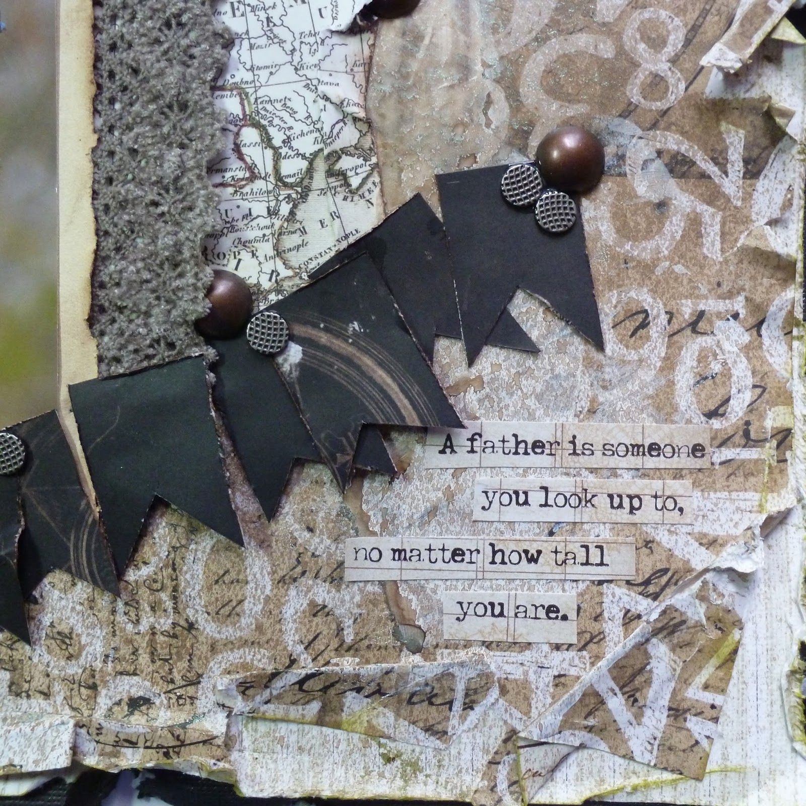 I took one of the papers, scraped some Gesso over it to tone down some of the patterns and went to work.